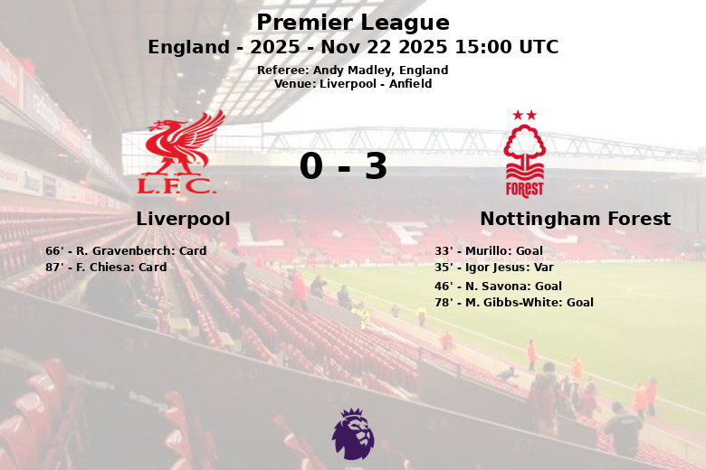 Nottingham Forest Surpreende Liverpool em Anfield com Vitória Contundente