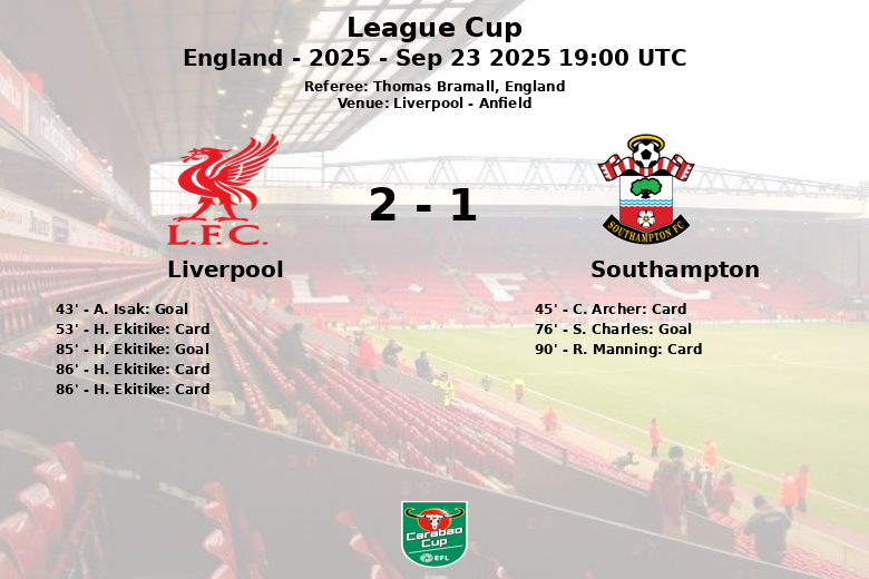 Liverpool, Inglaterra – Liverpool e Southampton empataram em Anfield num encontro da Taça da Liga que deixou os adeptos em suspenso. O jogo, arbitrado por Thomas Bramall, foi marcado pela intensidade e controvérsia.