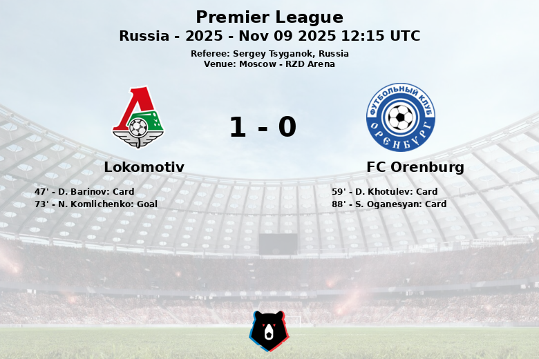 Moscou, Rússia – Em uma partida disputada na RZD Arena em 9 de novembro de 2025, o Lokomotiv garantiu uma vitória apertada sobre o FC Orenburg na 15ª rodada da Premier League russa. O jogo, apitado por Sergey Tsyganok, foi caracterizado pela igualdade na posse de bola (50% para cada equipe) e um jogo físico marcado por inúmeras faltas.
