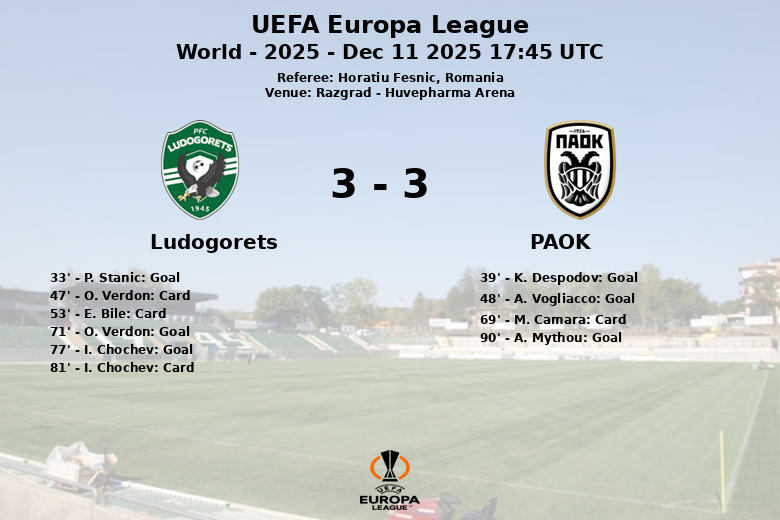 Razgrad, Bulgária – Em um jogo vibrante realizado na Huvepharma Arena, Ludogorets e PAOK selaram um empate que manteve os torcedores à beira de seus assentos. A partida, válida pela sexta rodada da fase de grupos da UEFA Europa League, culminou com um placar de 4 a 4.