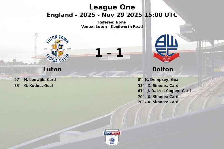 A pressão do Luton finalmente valeu a pena aos 83 minutos, quando G. Kodua, assistido por M. Alli, encontrou a rede e empatou o placar. O Luton dominou os chutes a gol (3 contra 1 do Bolton) e os escanteios (8 contra 2), demonstrando sua maior intensidade ofensiva durante a partida. A partida terminou em um empate que deixou um gosto agridoce para ambas as equipes.