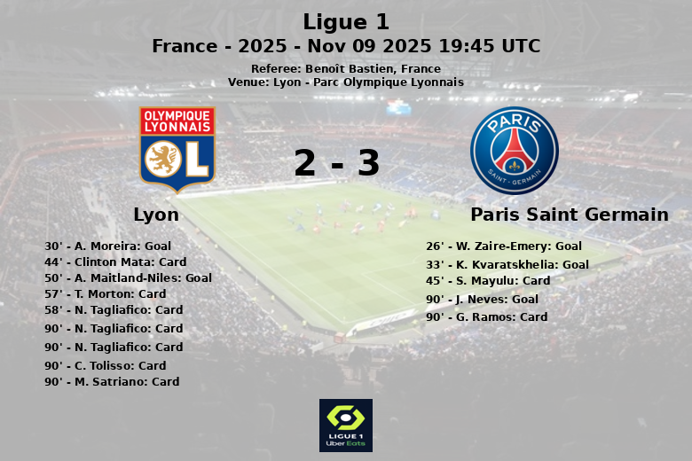 Lyon, França – Em um jogo vibrante e repleto de cartões, o Paris Saint Germain garantiu a vitória em sua visita ao Parc Olympique Lyonnais. A partida, válida pela 12ª rodada da Ligue 1, temporada de 2025, culminou em um placar que reflete a intensidade vivida em campo.