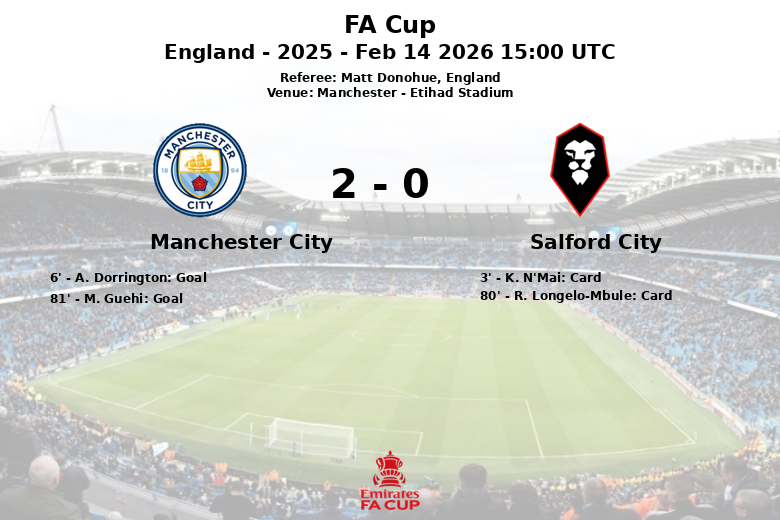 Manchester City vs Salford City Feb 14 2026 15:00 UTC