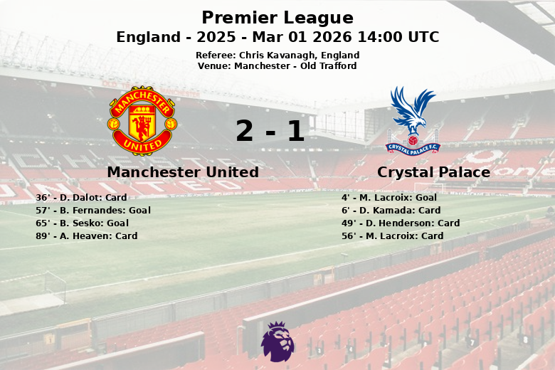 Manchester, Inglaterra – Em uma partida disputada da Premier League no Old Trafford, o Manchester United venceu o Crystal Palace em um jogo marcado por cartões e uma expulsão.