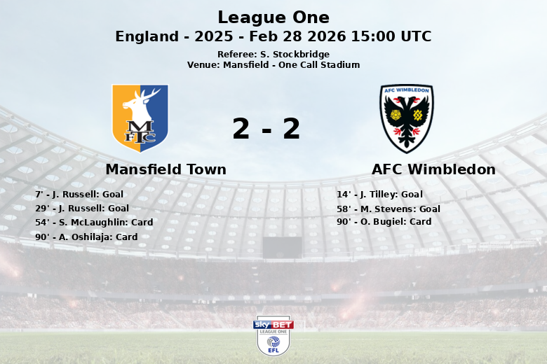 Mansfield, Inglaterra – Uma partida vibrante e disputada aconteceu hoje no One Call Stadium entre Mansfield Town e AFC Wimbledon, terminando em empate. O confronto, correspondente à 35ª rodada da League One, manteve os torcedores à beira de seus assentos.