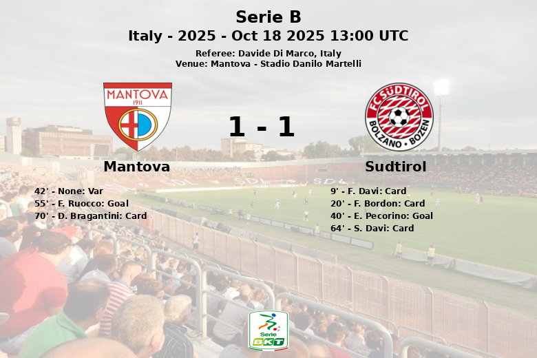 Num jogo dominado pela posse de bola do Mantova (83%), o Sudtirol garantiu um valioso empate de 1 a 1 na sua visita ao Stadio Danilo Martelli. A partida, válida pela 8ª rodada da Serie B, foi caracterizada pela intensidade e pelo jogo tático.