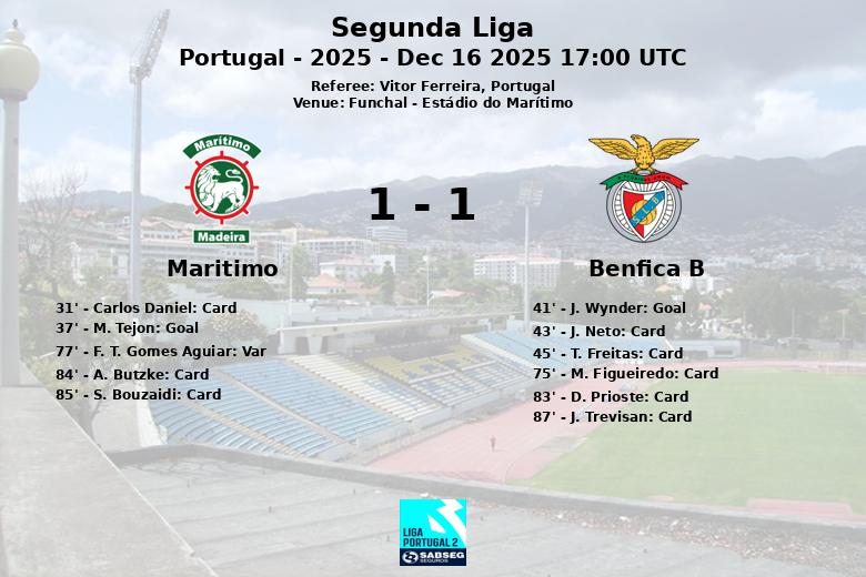 O Funchal foi palco de um jogo disputado e cheio de emoções entre o Marítimo e o Benfica B, que terminou com um empate que deixou um sabor agridoce para ambas as equipas. O encontro, válido pela jornada 14 da Segunda Liga portuguesa, ficou marcado pelas inúmeras advertências e pela intensidade no jogo.