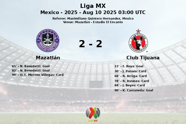 Mazatlán vs Club Tijuana Aug 10 2025 03:00 UTC