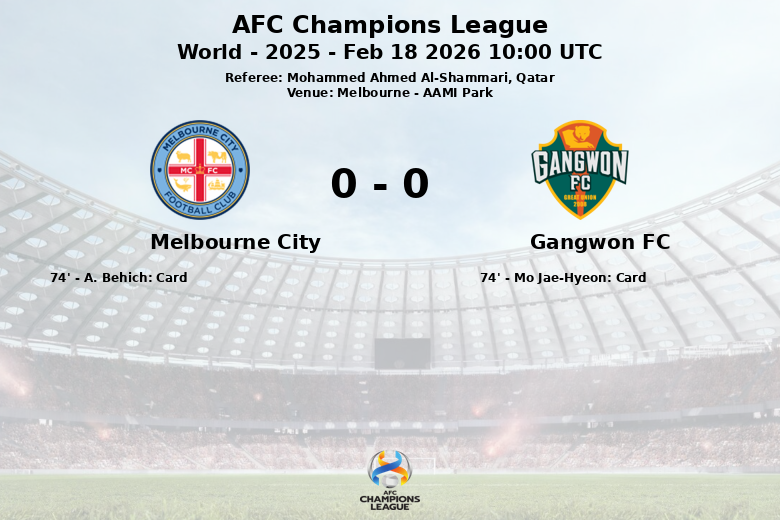 Melbourne, Austrália – Em um confronto disputado no AAMI Park em Melbourne, o Melbourne City e o Gangwon FC empataram em uma partida correspondente à fase de grupos da Liga dos Campeões da AFC. O encontro, arbitrado por Mohammed Ahmed Al-Shammari do Catar, foi caracterizado pela paridade no jogo, refletida na posse de bola, que foi dividida em 50% entre as duas equipes.