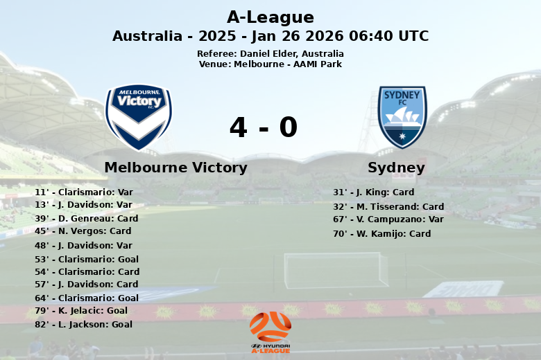 Melbourne, Austrália – O AAMI Park foi palco de uma vitória retumbante do Melbourne Victory sobre o Sydney FC em uma partida da A-League disputada em 26 de janeiro de 2026. A partida, arbitrada por Daniel Elder, foi marcada pela controvérsia do VAR e um domínio ofensivo do Victory que resultou em uma goleada.