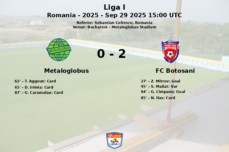 Bucareste, Romênia – O FC Botosani garantiu a vitória em sua visita ao Estádio Metaloglobus em uma partida correspondente à 11ª rodada da Liga I. A partida, disputada em Bucareste em 29 de setembro de 2025, foi marcada pela intensidade e alguns momentos-chave que definiram o rumo do confronto.