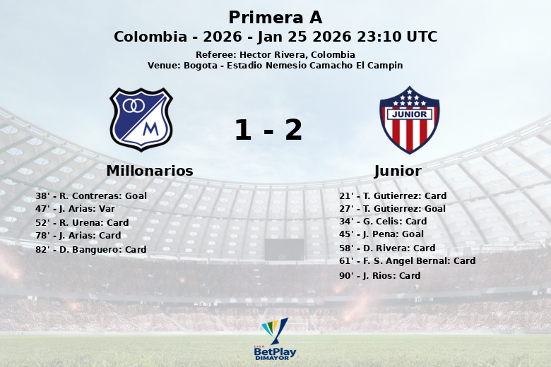 Em uma partida carregada de emoção e alternativas, o Junior conseguiu superar o Millonarios no Estádio Nemesio Camacho El Campín, em Bogotá. O jogo, válido pela segunda rodada da temporada regular da Primera A colombiana, terminou com um placar favorável aos visitantes.