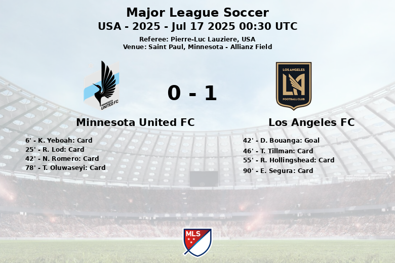 Saint Paul, Minnesota – Em uma partida intensa e repleta de cartões, o Los Angeles FC conseguiu superar o Minnesota United no Allianz Field com um placar de 1 a 0. A partida, correspondente à 23ª rodada da Major League Soccer, foi caracterizada por um jogo disputado no meio-campo e constantes interrupções devido às numerosas faltas.