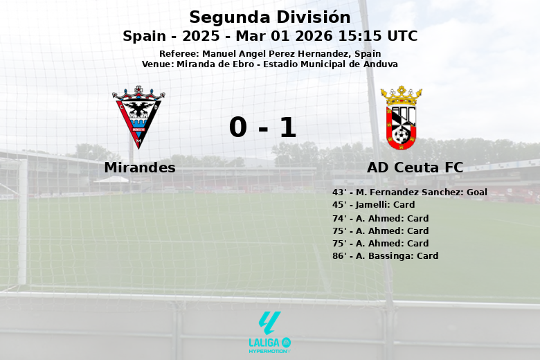 Mirandes vs AD Ceuta FC Mar 01 2026 15:15 UTC