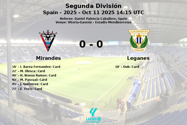 Vitoria-Gasteiz testemunhou uma partida disputada na nona jornada da Segunda División, onde o Mirandés, jogando em casa no Estádio Mendizorrotza, enfrentou um Leganés que dominou a posse de bola com 68%. Apesar da clara diferença na posse, o Mirandés ofereceu resistência, embora com um jogo marcado pela intensidade e faltas.