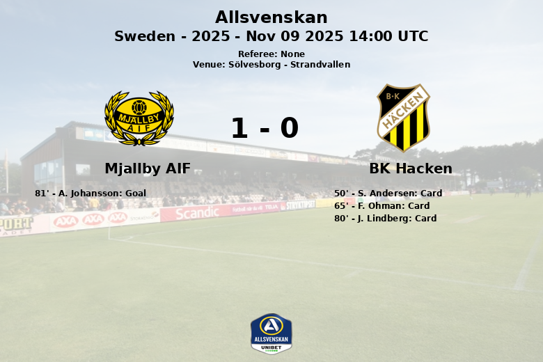 Sölvesborg, Suécia – Em uma partida realizada no Strandvallen, Mjallby AIF garantiu uma vitória apertada sobre o BK Hacken em um jogo correspondente à 30ª rodada da Allsvenskan 2025. A partida, com Mjallby AIF desfrutando de 55% de posse de bola, foi tensa e tática. Ambas as equipes registraram 15 chutes, mas a eficiência em frente ao gol provou ser decisiva. BK Hacken teve mais escanteios (9 a 3), mas Mjallby AIF se mostrou mais eficaz na área adversária. O único gol da partida saiu aos 81 minutos, marcado por A. Johansson para o Mjallby AIF, inclinando a balança a seu favor. A partida também foi caracterizada por um alto número de faltas, com o BK Hacken cometendo 17 e o Mjallby AIF 12. Três jogadores do BK Hacken receberam cartões amarelos, enquanto o Mjallby AIF manteve a disciplina sem receber nenhuma advertência. O resultado final reflete a capacidade do Mjallby AIF de capitalizar suas oportunidades e manter a liderança até o final. Mjallby AIF 1, BK Hacken 0.