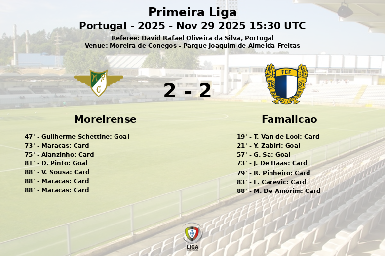 Moreira de Cónegos foi palco de um jogo vibrante e cheio de alternativas entre Moreirense e Famalicão, que culminou num empate que deixou os adeptos em suspenso. O encontro, disputado no Parque Joaquim de Almeida Freitas, foi marcado por golos, cartões e uma expulsão que acrescentaram dramatismo ao marcador.