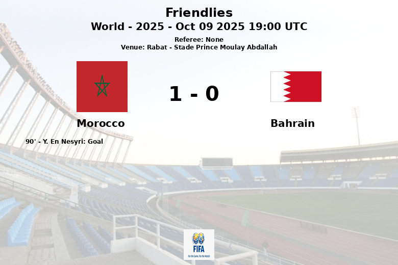 O gol que desequilibrou o placar chegou aos 90 minutos, obra de Y. En Nesyri, que aproveitou uma assistência de A. Hakimi para dar a vitória a Marrocos. O resultado final reflete a superioridade marroquina ao longo do encontro, ainda que a resistência de Bahrein tenha mantido a partida aberta até o final.