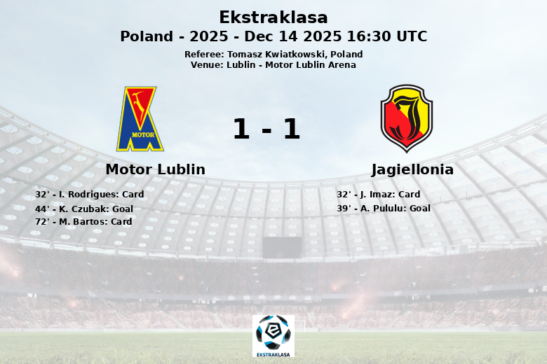O primeiro tempo foi vibrante, com o Jagiellonia abrindo o placar aos 39 minutos com um gol de A. Pululu. No entanto, a alegria dos visitantes durou pouco, pois o Motor Lublin respondeu aos 44 minutos com um pênalti convertido por K. Czubak, igualando o placar antes do intervalo.