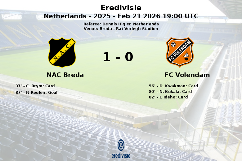 NAC Breda vs FC Volendam Feb 21 2026 19:00 UTC