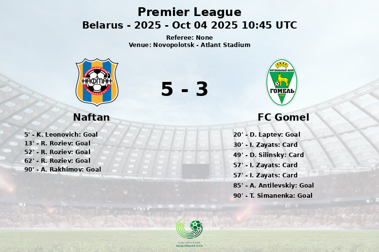 Novopolotsk, Belarus – Em um confronto vibrante realizado no Estádio Atlant, o Naftan triunfou sobre o FC Gomel em uma partida correspondente à 24ª rodada da Premier League bielorrussa. O jogo, realizado em 4 de outubro de 2025, às 10h45, foi marcado por uma chuva de gols e momentos de alta tensão.