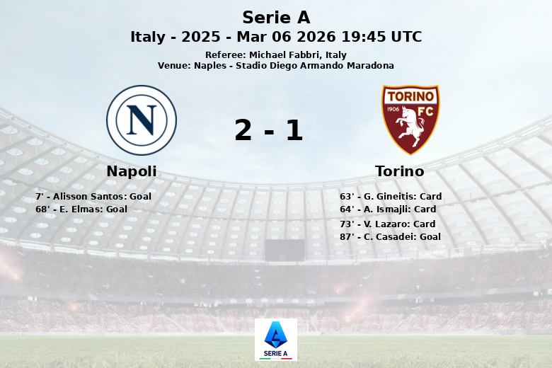 No segundo tempo, o Napoli ampliou a vantagem aos 68 minutos com um gol de E. Elmas, assistido por M. Politano. No entanto, o Torino não desistiu e procurou diminuir a diferença no placar.