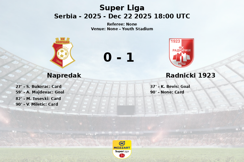 Krusevac, Sérvia – Em partida válida pela 20ª rodada da Super Liga Sérvia, o Radnicki 1923 derrotou o Napredak com um único gol. O jogo, realizado no Youth Stadium, foi tenso e marcado por um jogo físico.