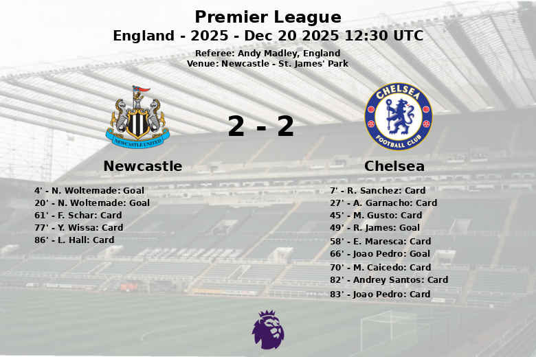 O Newcastle assumiu a liderança rapidamente com dois gols de N. Woltemade aos 4 e 20 minutos, o último com assistência de A. Gordon. No entanto, o Chelsea não desistiu e R. James diminuiu aos 49 minutos. O empate final veio aos 66 minutos, graças a Joao Pedro, que aproveitou uma assistência de R. Sanchez.