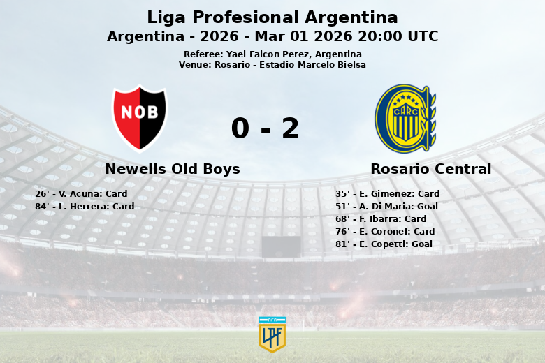 Rosario, Argentina – Em um clássico vibrante disputado no Estádio Marcelo Bielsa, o Rosario Central derrotou o Newell’s Old Boys em partida válida pela oitava rodada da Liga Profesional Argentina. O encontro, arbitrado por Yael Falcón Pérez, foi marcado pela intensidade e luta em cada setor do campo.