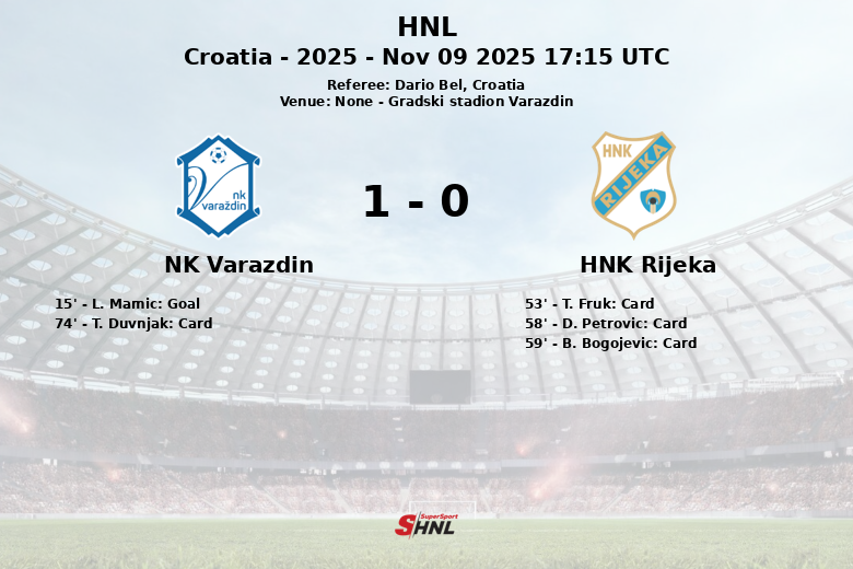 A partida também foi marcada por uma série de cartões amarelos. O Rijeka recebeu três advertências, para T. Fruk, D. Petrovic e B. Bogojevic, enquanto T. Duvnjak, do Varazdin, também foi advertido. O árbitro Dario Bel teve trabalho para manter a ordem em um encontro onde foram cometidas um total de 27 faltas (14 do Varazdin e 13 do Rijeka). No final, o gol de Mamic foi suficiente para dar a vitória à equipe da casa.