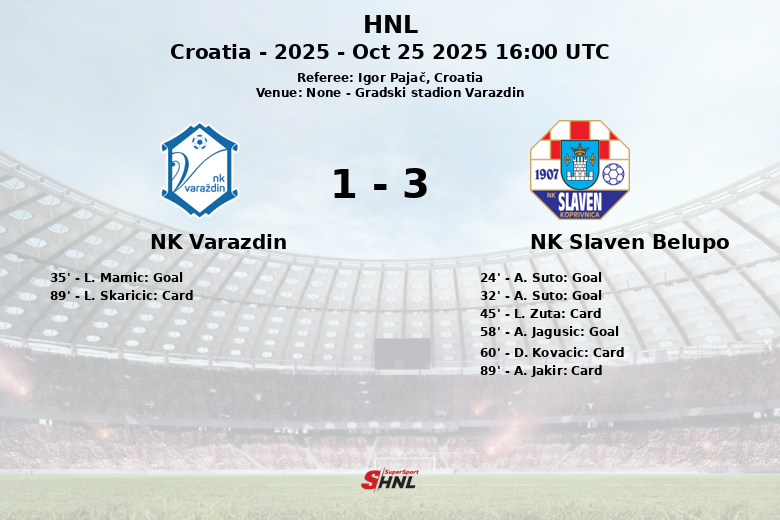 Varazdin, Croácia – Em uma partida realizada no Gradski stadion Varazdin, o Slaven Belupo triunfou sobre o NK Varazdin com um placar final de 3 a 1. Apesar do Varazdin manter a maior parte da posse de bola com 56% em comparação com os 44% do Belupo, a eficácia deste último provou ser decisiva.
