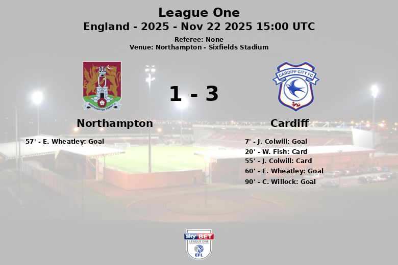 Northampton, Inglaterra – Em um encontro disputado no Sixfields Stadium, Cardiff e Northampton Town empataram em um jogo cheio de alternativas. Cardiff adiantou-se cedo com um gol de J. Colwill aos 7 minutos, assistido por R. Kpakio. No entanto, o jogo tornou-se mais complicado para os visitantes com um cartão amarelo para W. Fish aos 20 minutos e outro para J. Colwill aos 55 minutos. Northampton aproveitou a sua maior posse de bola (52%) para igualar o marcador aos 57 minutos, com um gol de E. Wheatley, assistido por M. Forbes. A sorte sorriu para Cardiff quando E. Wheatley marcou um gol contra aos 60 minutos, dando novamente a vantagem à equipe galesa. Quando parecia que a vitória iria para Cardiff, C. Willock marcou aos 90 minutos, assistido por R. Kpakio, selando o empate final. Northampton dominou a posse de bola e teve mais remates, mas Cardiff soube aproveitar as suas oportunidades.