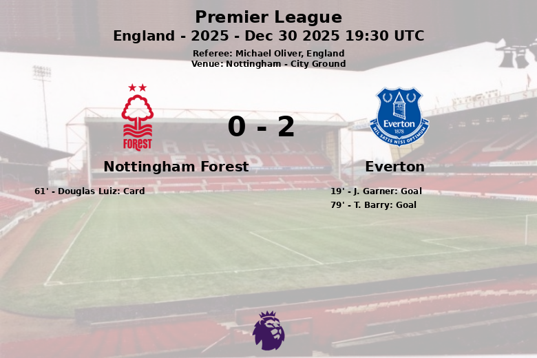 O primeiro gol da partida ocorreu aos 19 minutos, quando J. Garner, assistido por D. McNeil, abriu o placar para o Everton. Apesar da insistência do Nottingham Forest, que acumulou 8 escanteios e buscou o empate com afinco, o Everton ampliou a vantagem aos 79 minutos com um gol de T. Barry, novamente assistido por Garner. Douglas Luiz, do Nottingham Forest, recebeu um cartão amarelo aos 61 minutos.