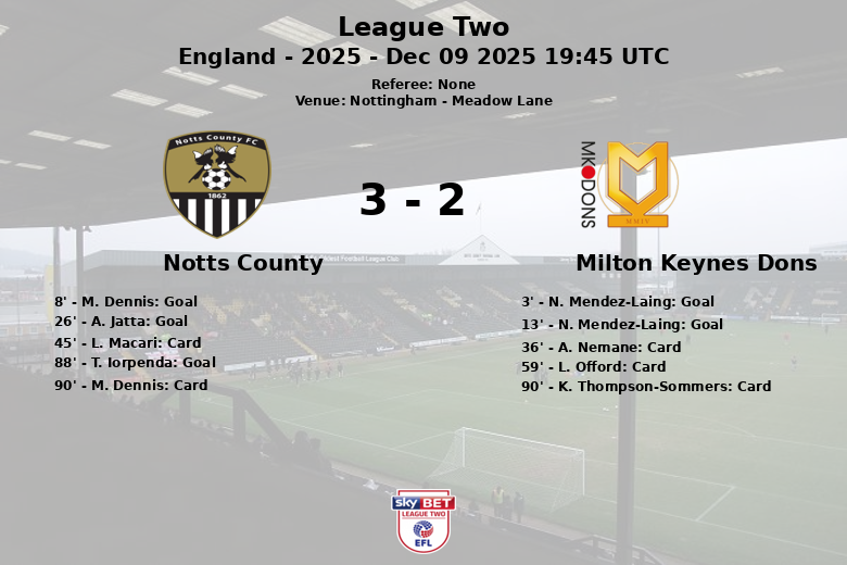 Nottingham, Inglaterra – Em uma partida vibrante e cheia de alternativas, o Notts County conseguiu superar o Milton Keynes Dons em seu encontro pela League Two. O estádio Meadow Lane testemunhou um duelo com cinco gols e momentos de alta tensão.