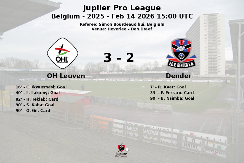Num encontro disputado em Heverlee, o OH Leuven e o Dender protagonizaram um emocionante empate com golos em ambas as balizas. O jogo, correspondente à 25ª jornada da Jupiler Pro League, foi carregado de intensidade e alternativas.