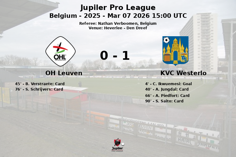 Heverlee, Bélgica – Uma partida disputada no Den Dreef entre OH Leuven e KVC Westerlo culminou com uma vitória graças a um gol contra no início do jogo. O gol infeliz de C. Ikwuemesi aos 4 minutos, após uma assistência não especificada, deu a vantagem inicial ao KVC Westerlo.