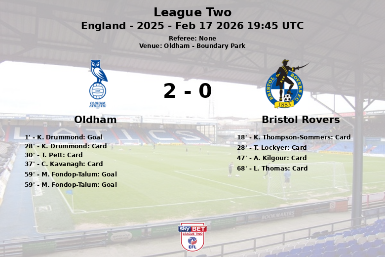 Oldham vs Bristol Rovers Feb 17 2026 19:45 UTC
