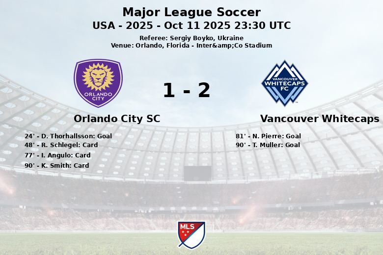 Apesar de um esforço defensivo considerável, exemplificado pelos cartões amarelos mostrados a Schlegel, Angulo e Smith, o Orlando City não conseguiu conter o ataque persistente do Vancouver Whitecaps, que dominou a posse de bola e criou inúmeras oportunidades de gol. A maior precisão dos Whitecaps em seus chutes a gol foi, em última análise, o fator decisivo.