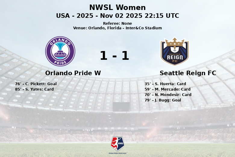 A partida foi caracterizada por um grande número de faltas, 10 cometidas pelo Seattle Reign FC e 5 pelo Orlando Pride. O árbitro mostrou vários cartões amarelos, três para o Seattle Reign FC (S. Huerta, M. Mercado e N. Mondesir) e um para S. Yates do Orlando Pride. Apesar de dominar a posse de bola e gerar mais chances, o Orlando Pride não conseguiu garantir a vitória, terminando a partida com um empate que deixa um gosto agridoce para ambas as equipes.