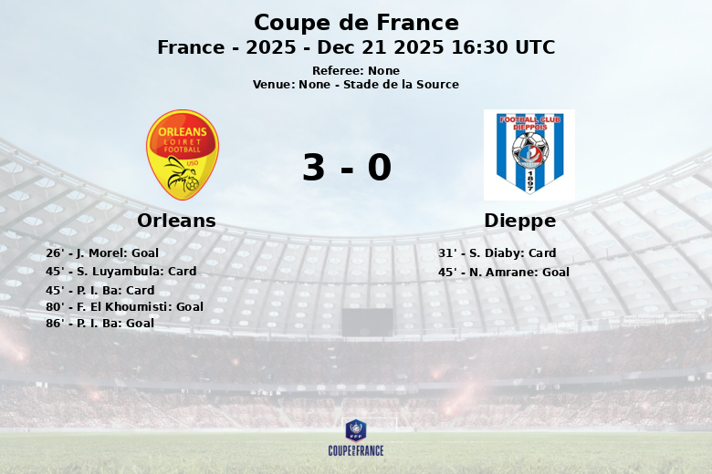O Orleans conquistou uma vitória disputada contra o Dieppe em uma partida da Copa da França que manteve os torcedores apreensivos até o apito final. O encontro, disputado no Stade de la Source, foi marcado pela intensidade e pelas batalhas no meio-campo.