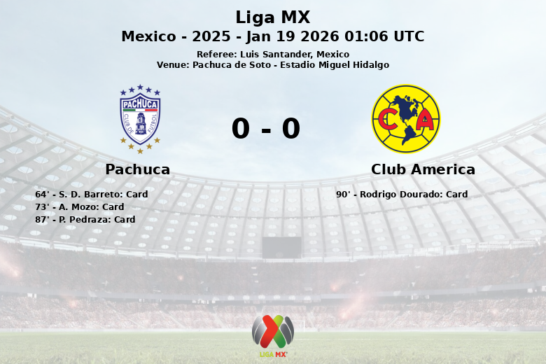 Pachuca de Soto, México – Em uma partida correspondente à rodada 3 do Clausura 2025 da Liga MX, Pachuca e Club America empataram em um jogo disputado no Estádio Miguel Hidalgo. Sob o olhar atento do árbitro Luis Santander, a partida foi caracterizada pela intensidade no meio-campo e pela luta constante pela posse de bola.