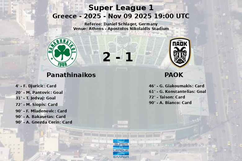 Atenas testemunhou um jogo intenso onde o Panathinaikos garantiu uma vitória surpreendente contra o PAOK. Apesar do claro domínio do PAOK na posse de bola (67% contra 33% do Panathinaikos), foi a equipe da casa que demonstrou maior eficácia em frente ao gol.
