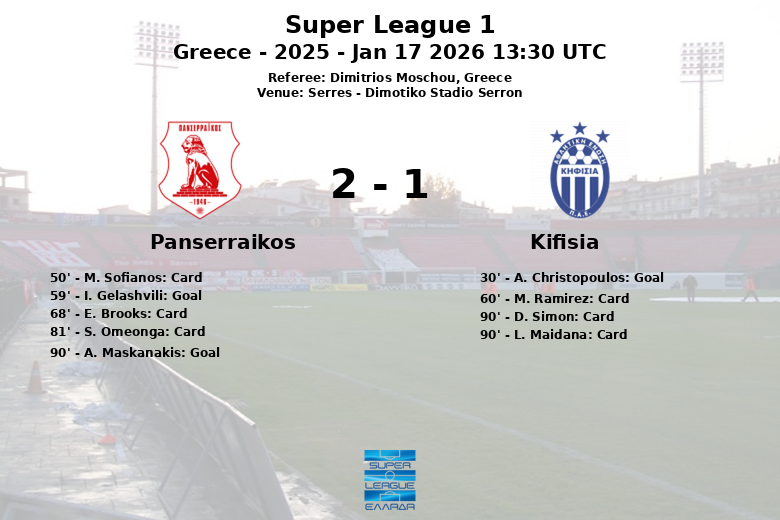 Serres, Grécia – Em um jogo emocionante realizado no Dimotiko Stadio Serron, Panserraikos e Kifisia empataram em uma partida que manteve os torcedores à beira de seus assentos até o último segundo. O jogo, correspondente à 17ª rodada da Super League 1, culminou com um placar final de 2 a 1.