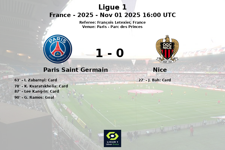 A persistência do PSG finalmente valeu a pena aos 90 minutos, quando G. Ramos aproveitou uma assistência de K. Kvaratskhelia para marcar o gol da vitória. O PSG gerou um total de 25 chutes, dos quais 5 foram no alvo, enquanto o Nice só conseguiu 5 chutes, com 2 direcionados ao gol. O árbitro francês François Letexier apitou a partida. O PSG conquistou 9 escanteios em comparação com o único do Nice, refletindo a pressão constante exercida sobre a área adversária. O jogo foi caracterizado por 12 faltas cometidas pelo PSG contra 5 do Nice.