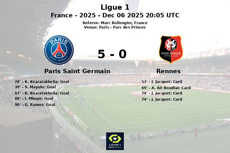 O Paris Saint-Germain fortalece sua posição na Ligue 1 após esta partida correspondente à 15ª rodada da temporada de 2025.