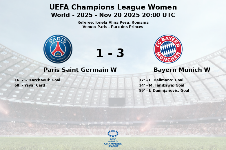 Paris, França – Uma partida emocionante no Parc des Princes viu o Bayern de Munique Feminino derrotar o Paris Saint Germain Feminino com um placar final de 3-1. A partida, correspondente à fase de grupos da Liga dos Campeões Feminina da UEFA, foi repleta de emoção e reviravoltas.