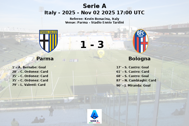Parma, Itália – Em uma partida disputada no Stadio Ennio Tardini, o Bolonha derrotou o Parma em um jogo repleto de intensidade e momentos dramáticos. O Parma começou forte, abrindo o placar logo no primeiro minuto com um gol de A. Bernabé. No entanto, o Bolonha respondeu com um gol de S. Castro aos 17 minutos, empatando o jogo.