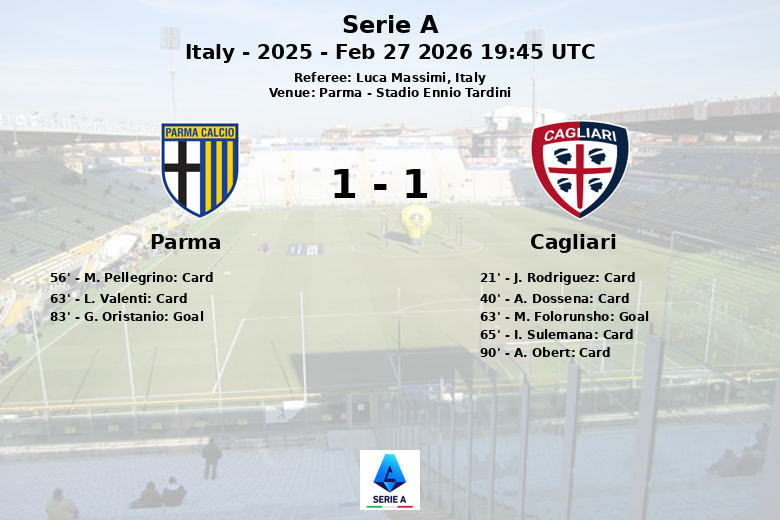 Um jogo tenso no Stadio Ennio Tardini, em Parma, terminou em um empate de 1-1, deixando ambos os lados com sentimentos mistos. O confronto da Serie A, correspondente à 27ª rodada, viu o Parma dominar a posse de bola com 55% em comparação com os 45% do Cagliari. No entanto, foi o Cagliari quem atacou primeiro, com um gol de Folorunsho aos 63 minutos, assistido por Esposito. O Parma, que teve um total de 15 chutes, 4 dos quais foram no alvo, lutou arduamente para encontrar o empate. Apesar de acumular 5 escanteios e cometer 14 faltas, não foi até os 83 minutos que Oristanio conseguiu vencer o goleiro adversário, estabelecendo o empate final. O jogo foi marcado por cartões amarelos, com 4 para o Cagliari (Rodriguez, Dossena, Sulemana, Obert) e 2 para o Parma (Pellegrino, Valenti). O árbitro Luca Massimi teve uma noite agitada neste encontro da Serie A.