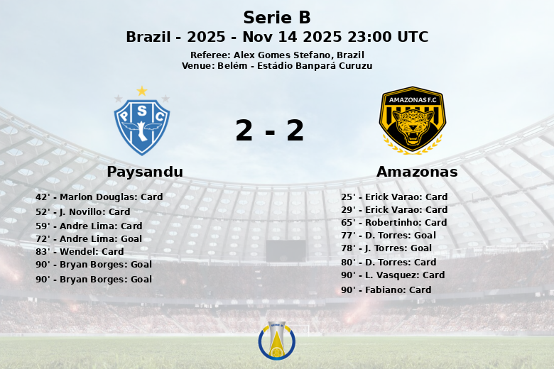 Belém foi palco de um confronto emocionante entre Paysandu e Amazonas no Estádio Banpará Curuzu, que terminou em empate. A partida, válida pela 37ª rodada da Série B, foi marcada pela intensidade e controvérsia, com nove cartões amarelos e um vermelho mostrados pelo árbitro Alex Gomes Stefano.