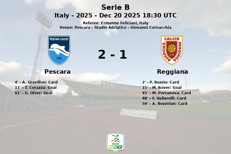 Pescara, Itália – Em um jogo disputado no Stadio Adriatico – Giovanni Cornacchia, Pescara e Reggiana empataram em uma partida cheia de intensidade e emoção. A partida, válida pela 17ª rodada da Serie B, Temporada 2025, viu ambas as equipes exibirem um futebol ofensivo, embora interrompido por numerosas faltas e cartões amarelos.